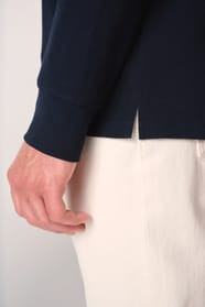 - Kragen und Ärmelabschlüsse aus 1x1-Rippstrick für einen gepflegten Look.